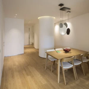 Admonter Parkett Landhausdiele Eiche elegance im Format classic 2000 x 162 x 15 mm mit ca. 3,6 mm Nutzschicht. Dieser 3-Schicht Parkett mit einer Click & Drop-down-Verbindung ist sowohl für die vollflächige Verklebung als auch für die schwimmende Verlegung geeignet. Die Easy-Care (EC) Oberfläche ist werkseitig wohnfertig geölt, gefast und gebürstet. Weichere Holzteile werden je nach Stärke der Bürstung, mal mehr und mal weniger ausgebürstet. Dadurch erhält der Boden eine plastische Oberfläche. Die pure Sinnlichkeit von Holz wird dadurch sicht- und spürbar. 4-seitig gefaste Kante. Die Sortierung elegance ist definiert durch: Das Holzbild wirkt ruhig und astarm beziehungsweise nur reduziert astig. Es ist schlicht und gefladert, ohne Splint (außer bei Nussbaum), und zeigt natürliche, artentypische Farb- und Strukturunterschiede. Kleine Fehlstellen und Risse sind produktspezifisch ausgebessert und mit braunem Kitt versehen, bei Nussbaum mit schwarzem Kitt. Risse sowie teilweise nicht vollständig geschlossene Ausbesserungen sind Teil des natürlichen Erscheinungsbildes des Holzes. Admonter Parkett Artikelnummer: 139257